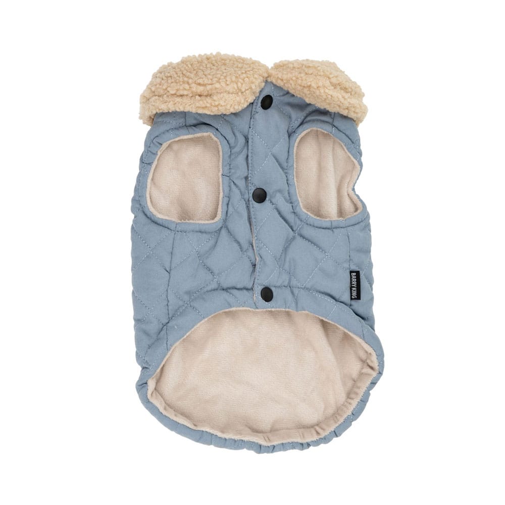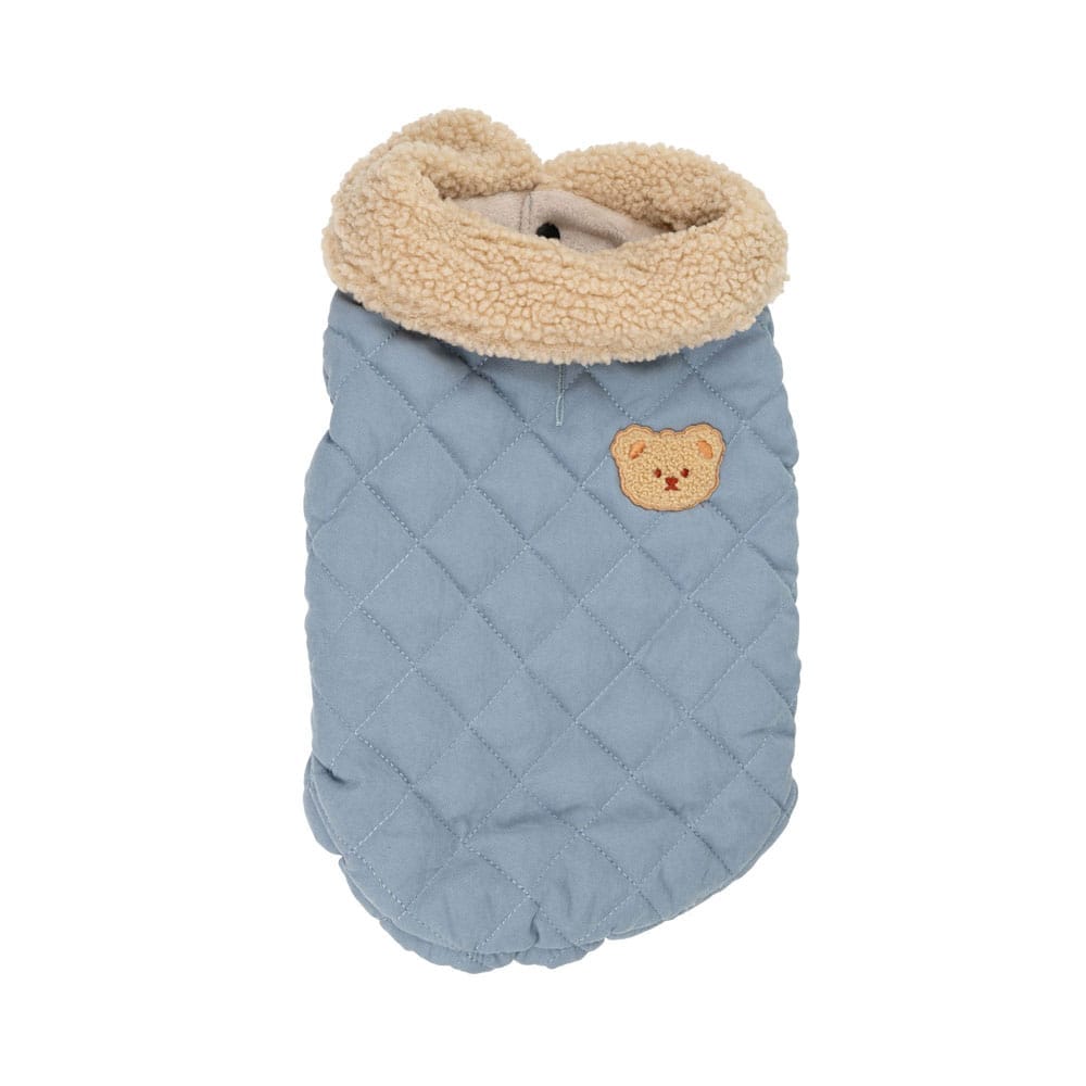 Barry King – Kurtka dla psa (niebieska) pikowana z naszywką miś, XS | 30 cm