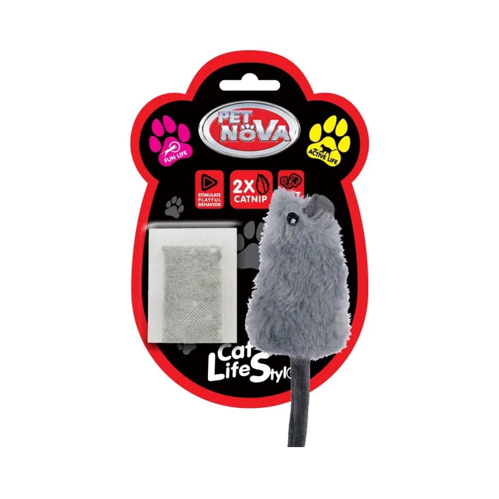 Pet Nova Pluszowa zabawka dla kota z kocimiętką to miękka maskotka z 2 saszetkami kocimiętki w zestawie. Idealna do tarmoszenia, gryzienia i przytulania – zachęca kota do zabawy i relaksu.