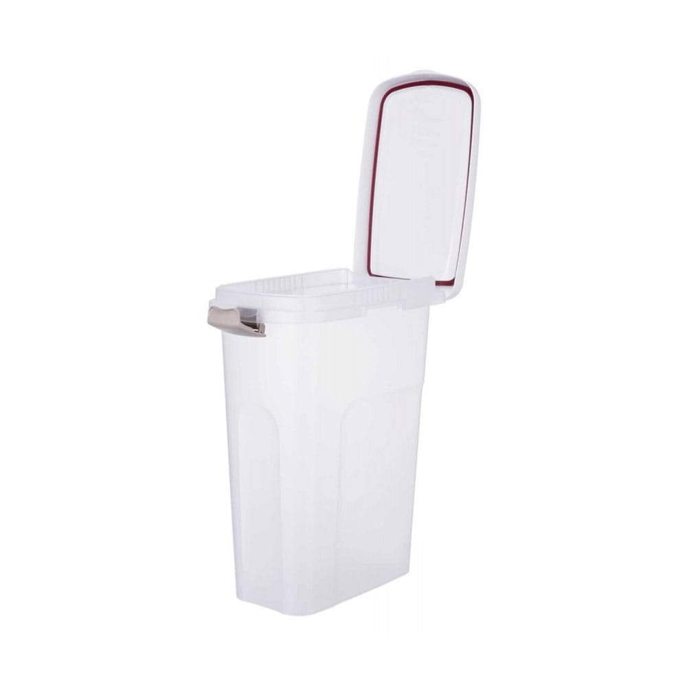 Trixie | Pojemnik na karmę (przezroczysty/biały) | 25 l | 24×51×39 cm to praktyczny, szczelny pojemnik do przechowywania karmy dla zwierząt. Jego przezroczysta konstrukcja umożliwia łatwą kontrolę ilości karmy, a solidna pokrywa zapewnia świeżość oraz chroni przed wilgocią i insektami. Idealny do przechowywania dużych ilości suchej karmy.